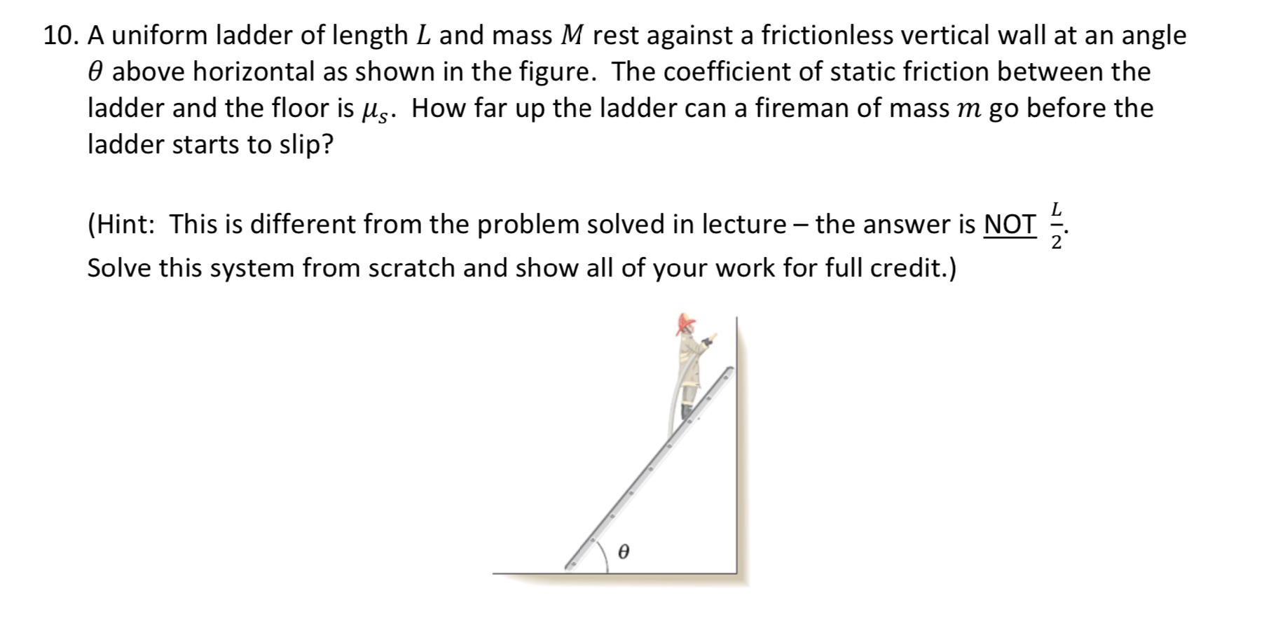 10. A uniform ladder of length L and mass M rest against a friction...