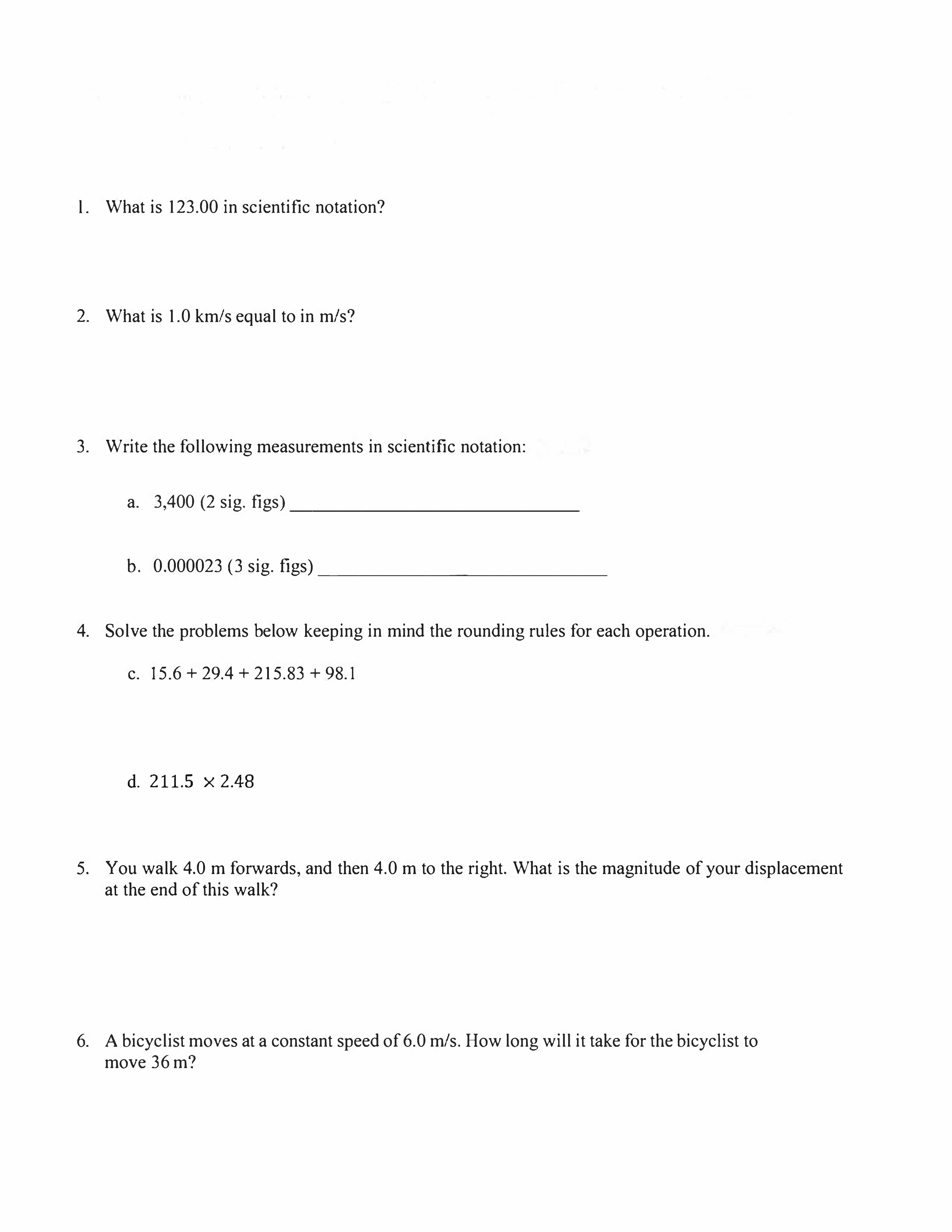 l . Wbat is 123.00 in scientific notation? 2. Wbat is 1.0 km/s equ...