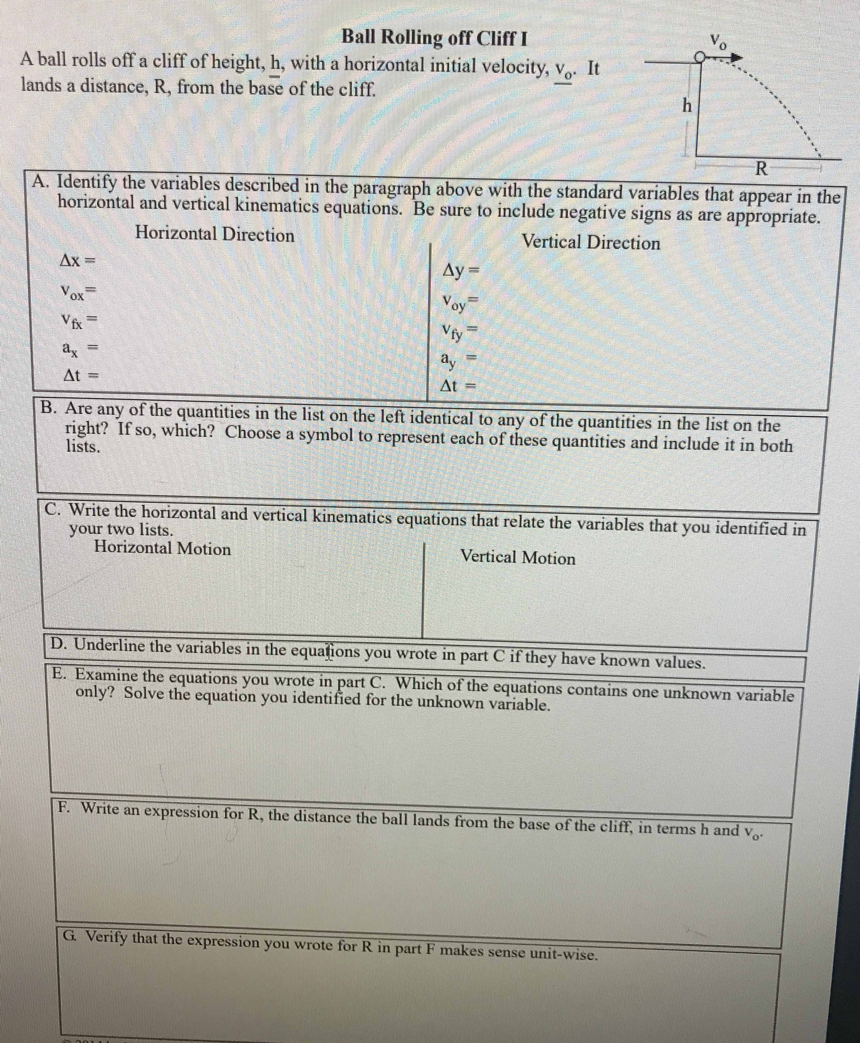 Ball Rolling off Cliff I Yo A ball rolls off a cliff of height, h...