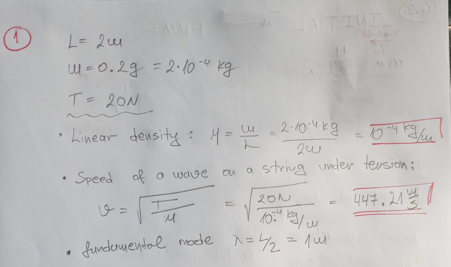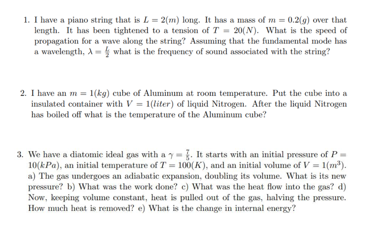 1. I have a piano string that is L = 2(m) long. It has a mass of m ...