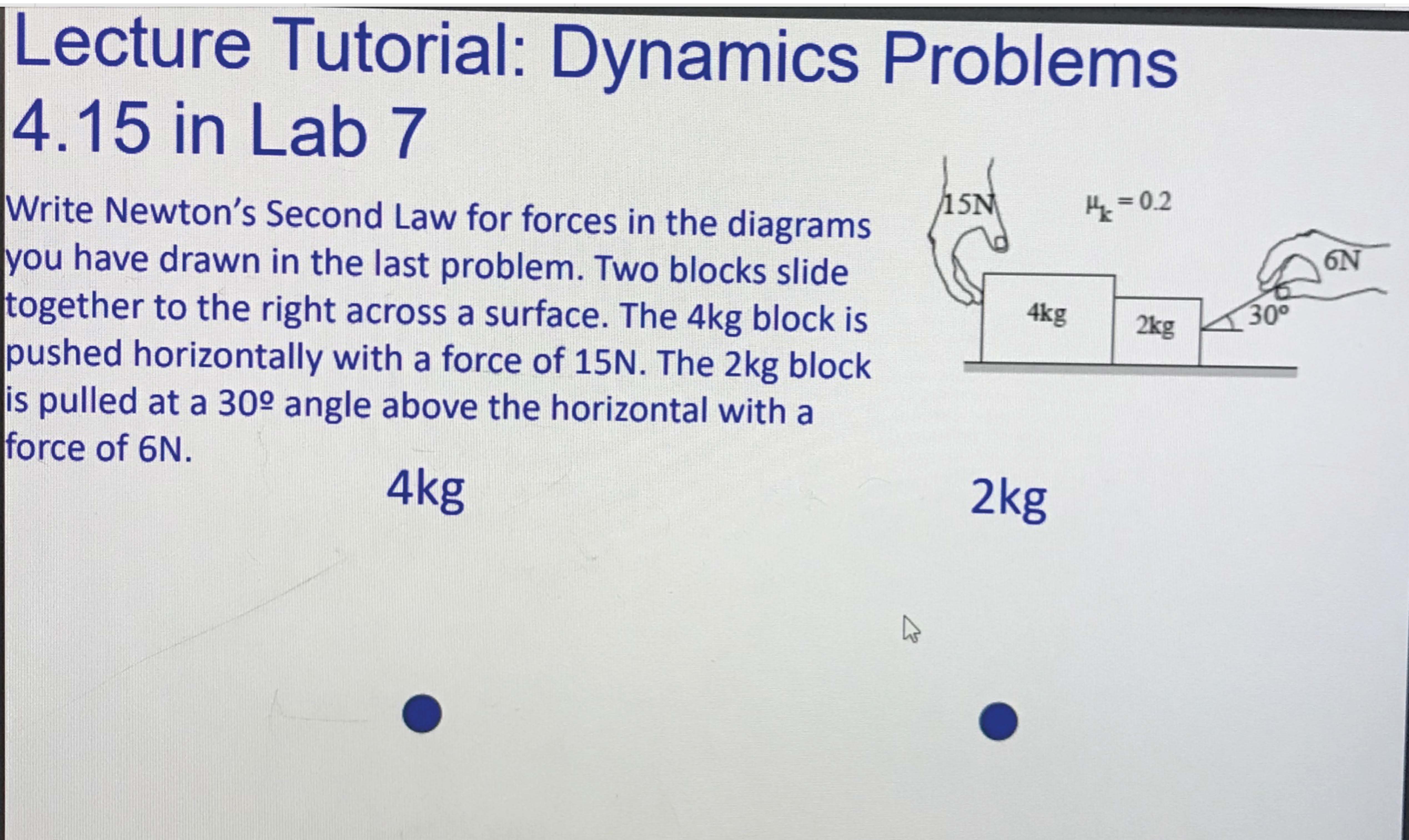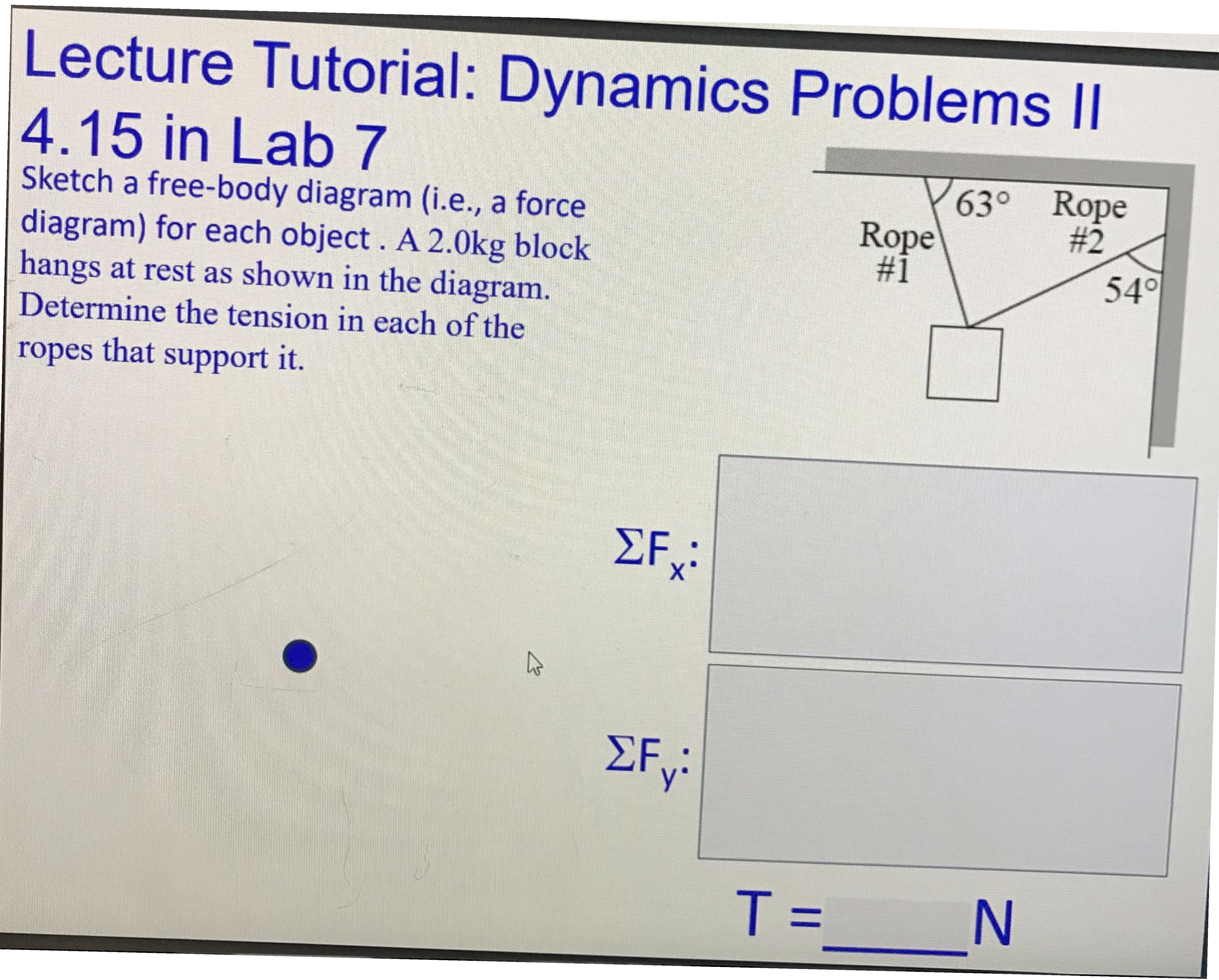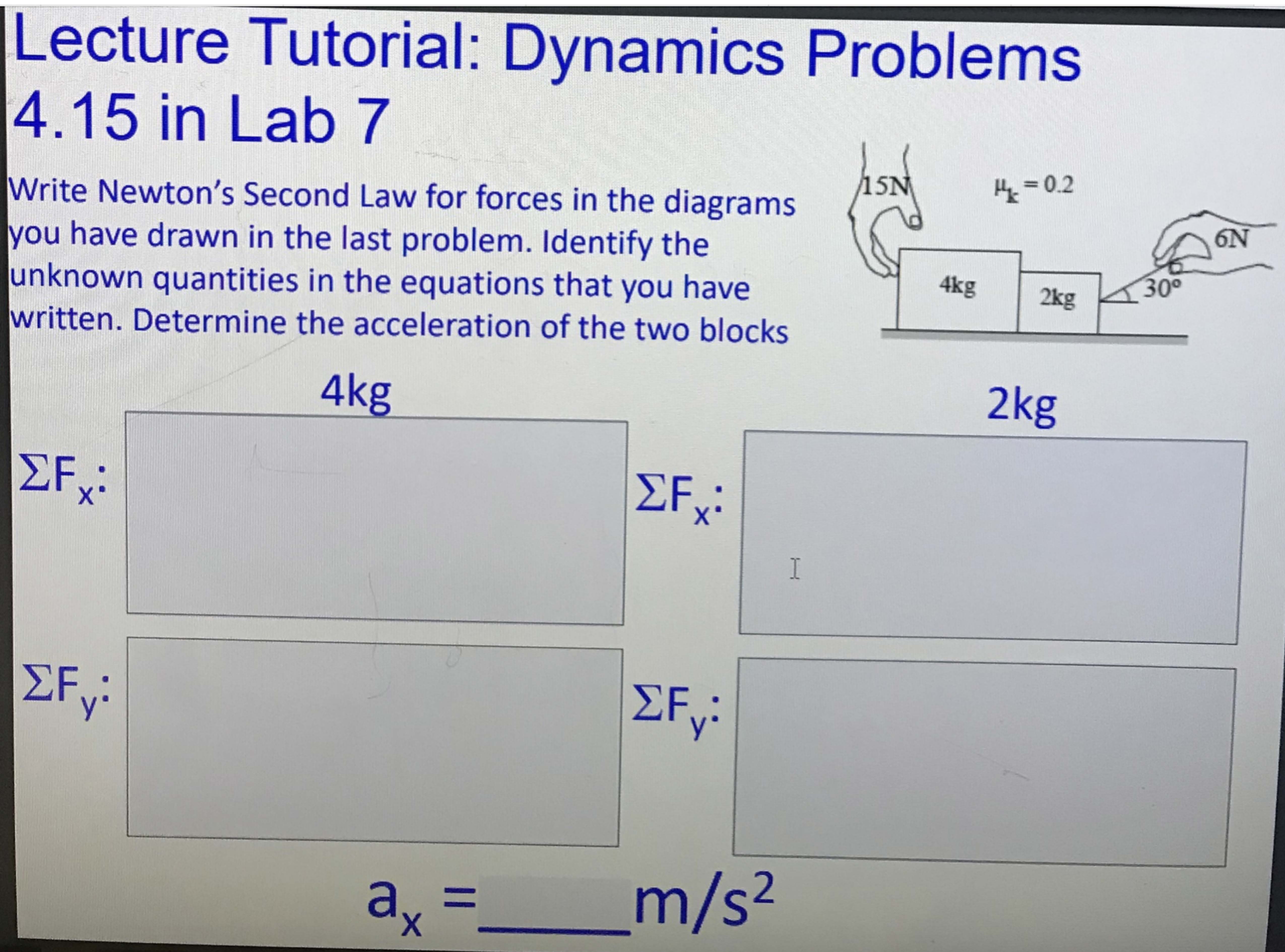 Lecture Tutorial: Dynamics Problems Il 4.15 in Lab 7 Sketch a fre...