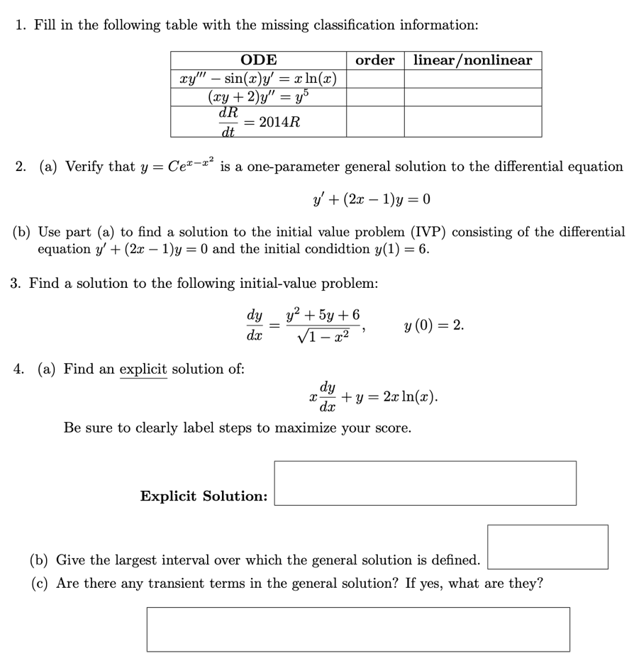 1. Fill in the following table with the missing classification info...