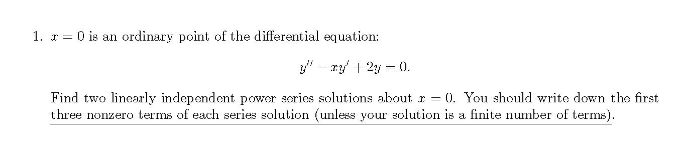 1. x = 0 is an ordinary point of the differential equation: Find t...