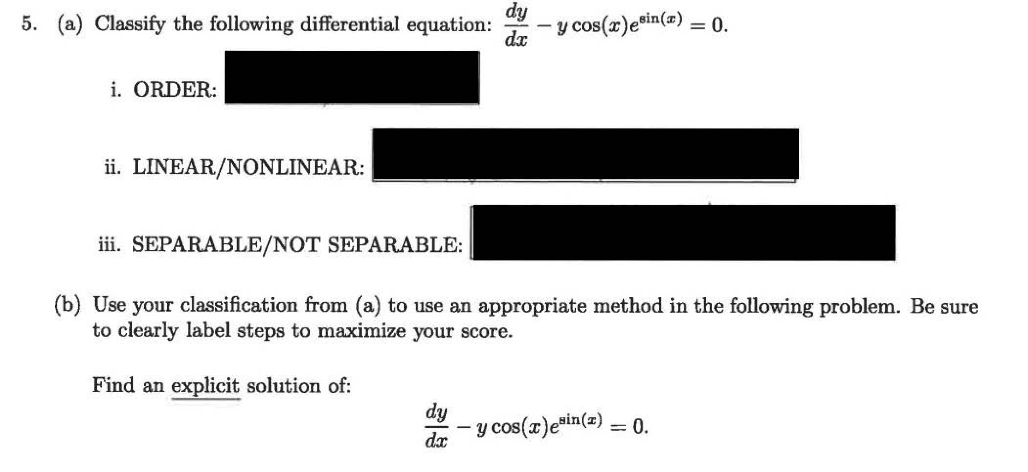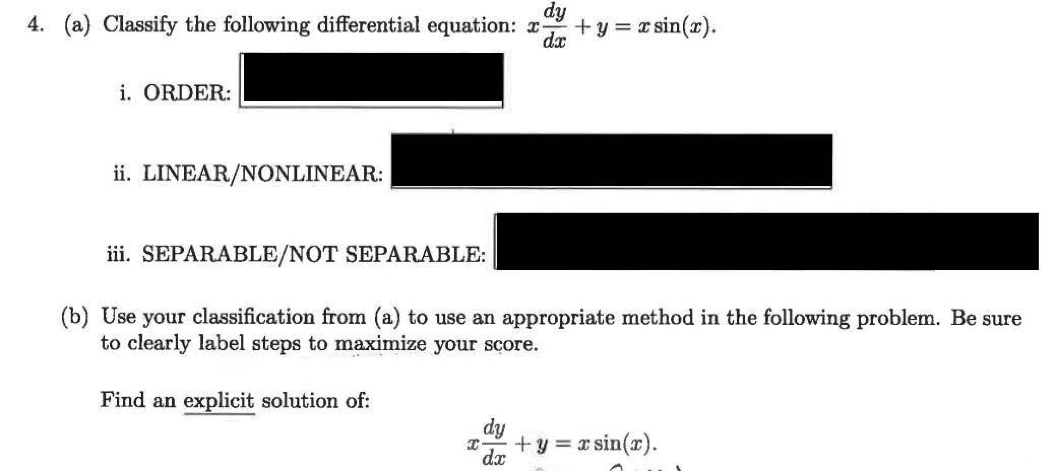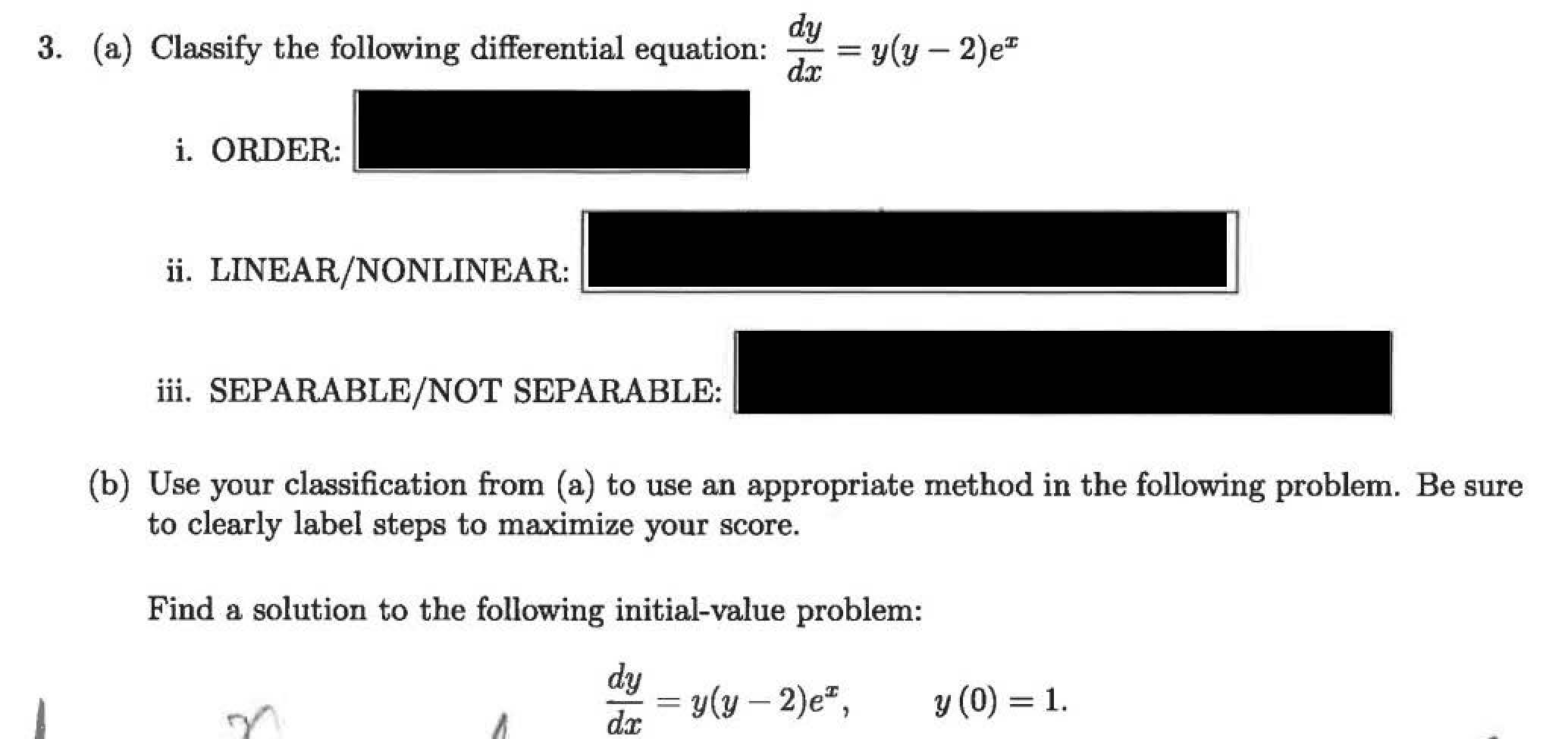 3. (a) Classify the following differential equation: i. ORDER: f...