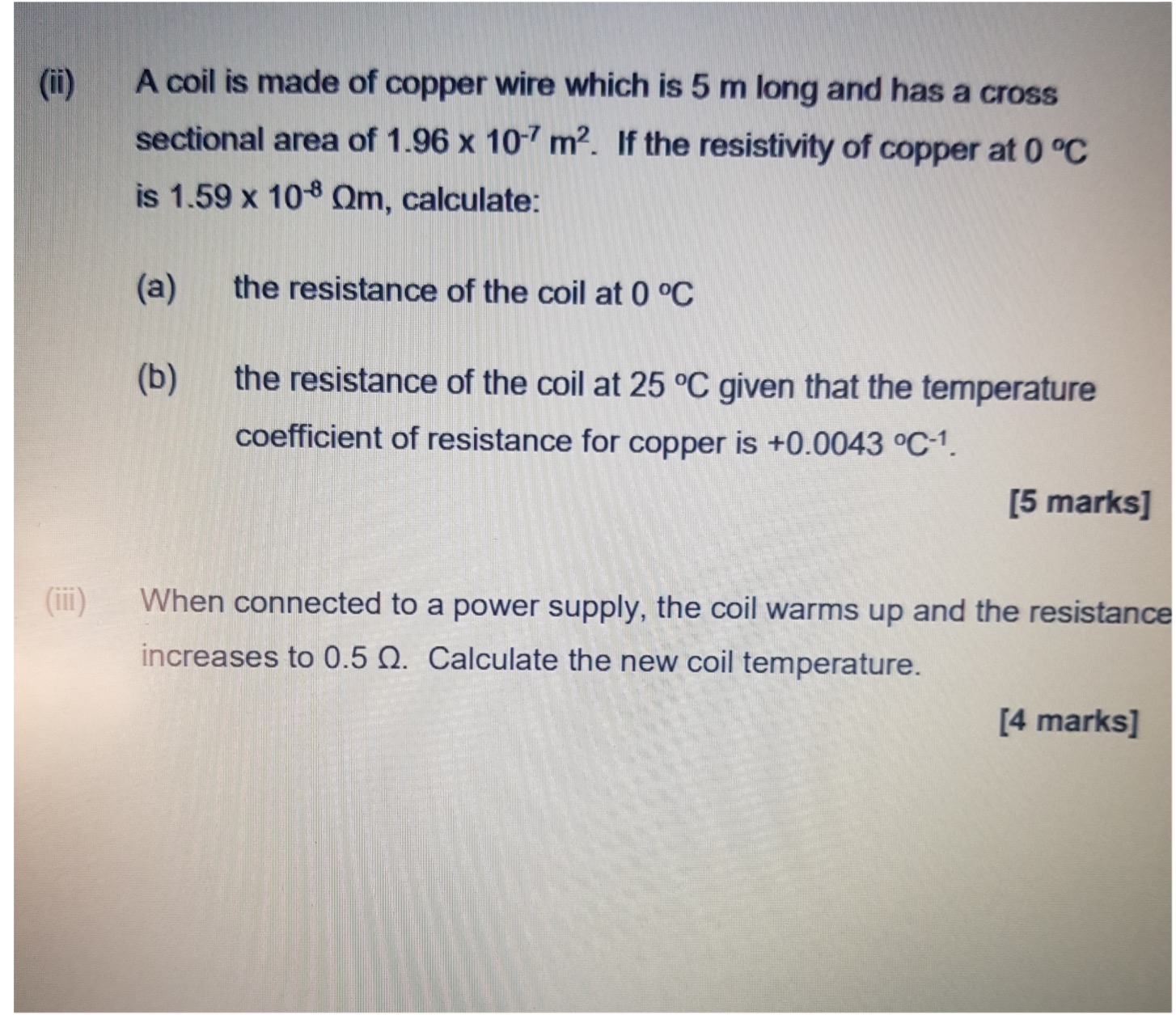 ii) A coil is made of copper wire which is 5 m long and has a cros...