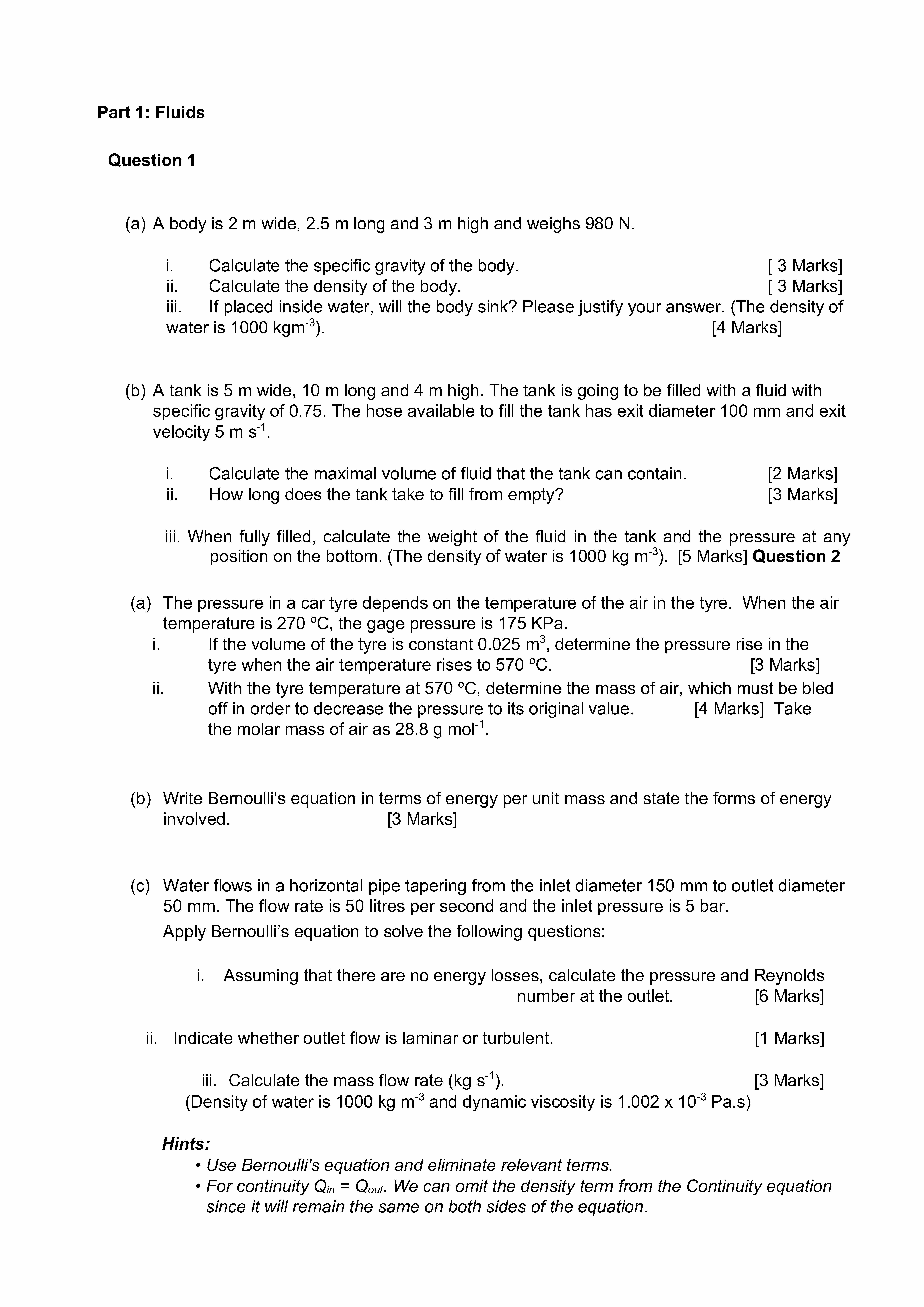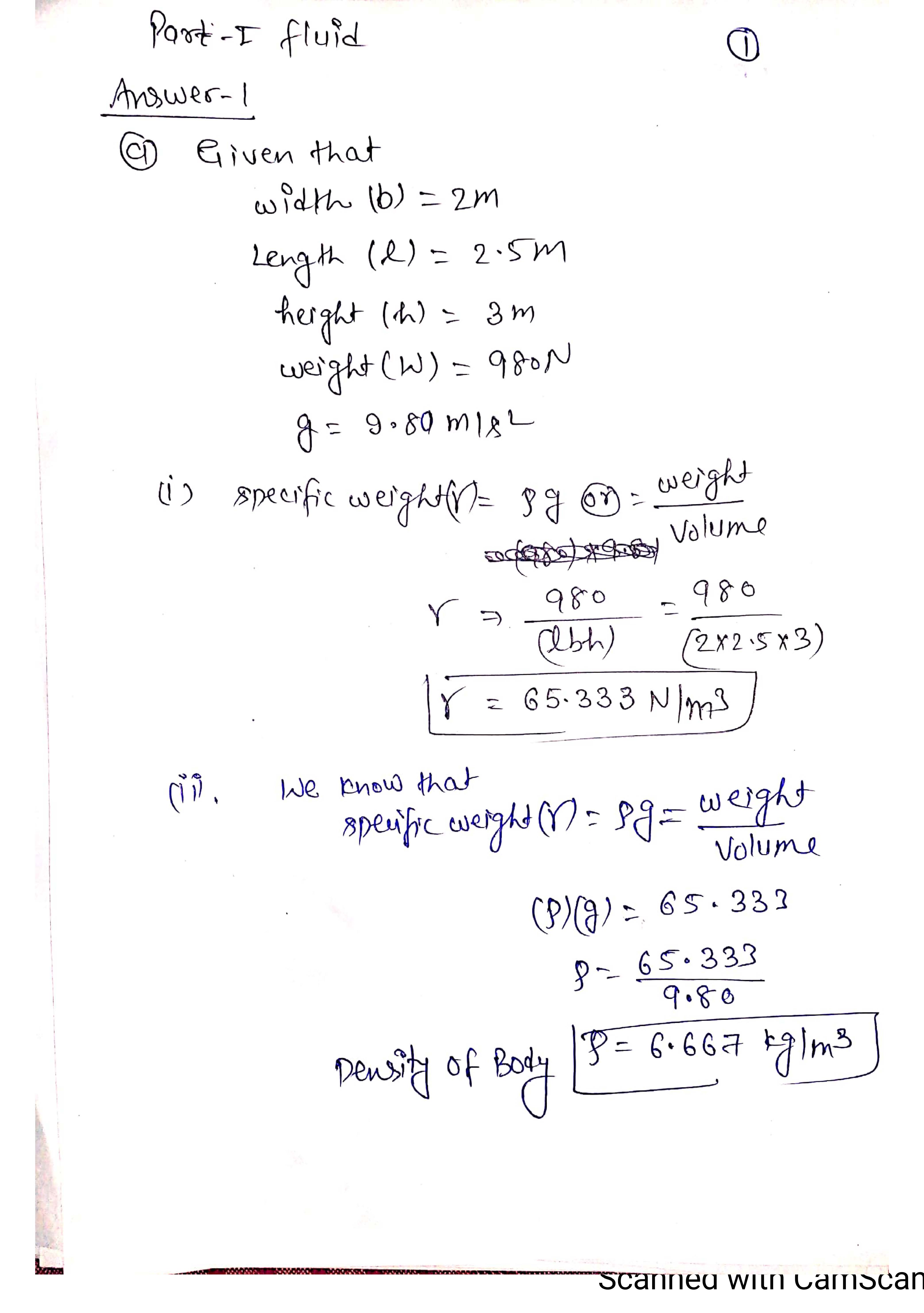 Part 1: Fluids Question 1 (a) A body is 2m wide, 2.5m long and 3m...