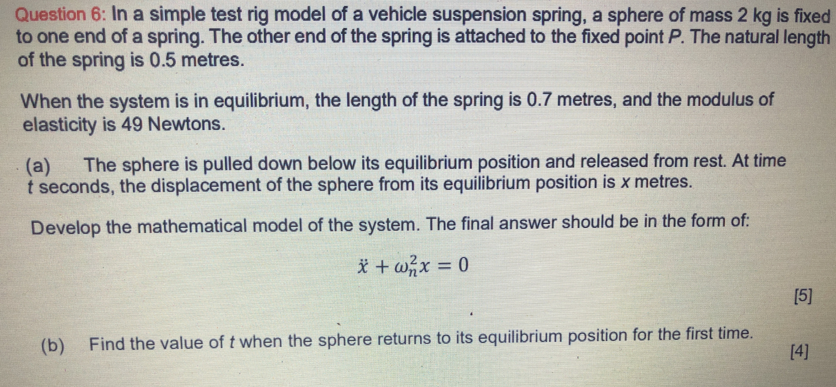 Question 6: In a simple test rig model of a vehicle suspension spri...