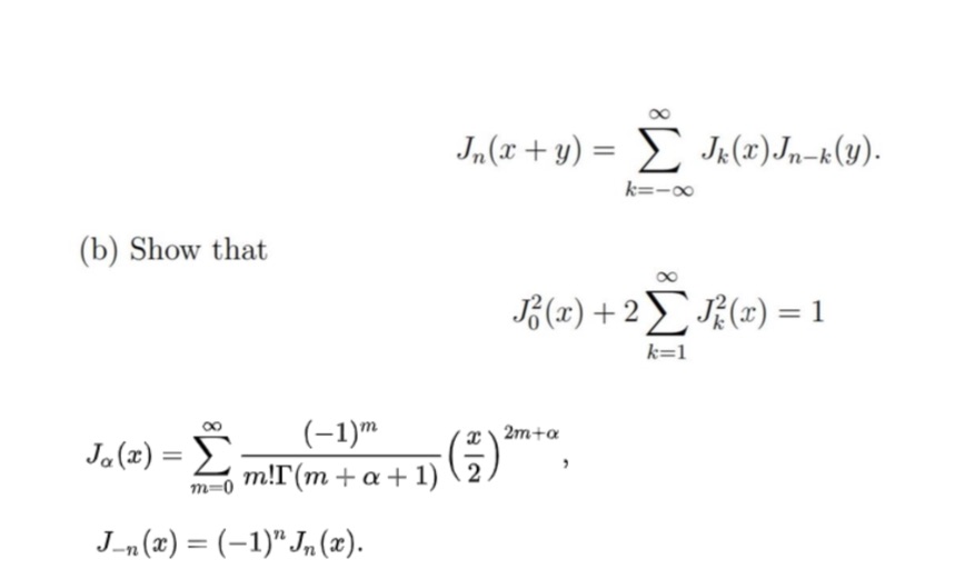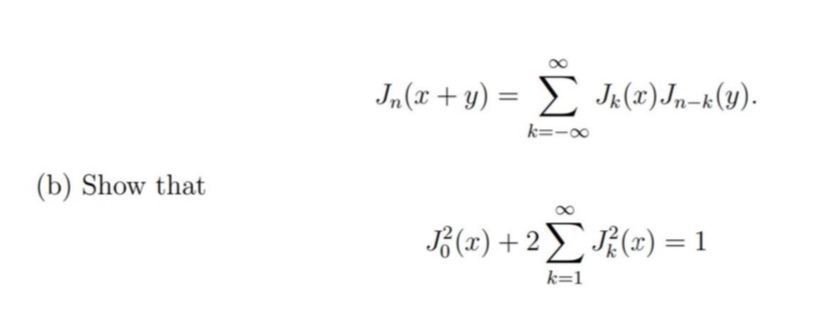 (b) Show that 00 Jo(x) + 2 Jx(x) = 1 k=1