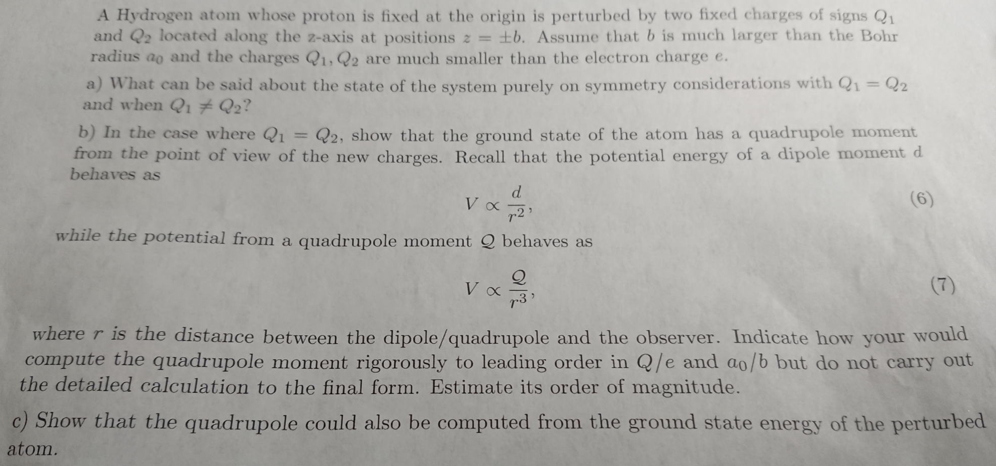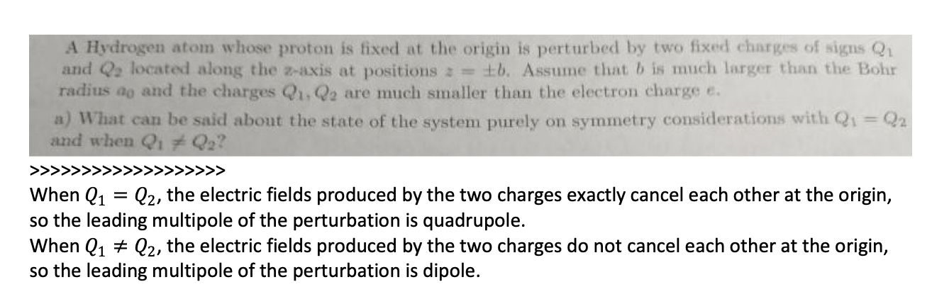 A Hydrogen atom whose proton is fixed at the origin is perturbed by...
