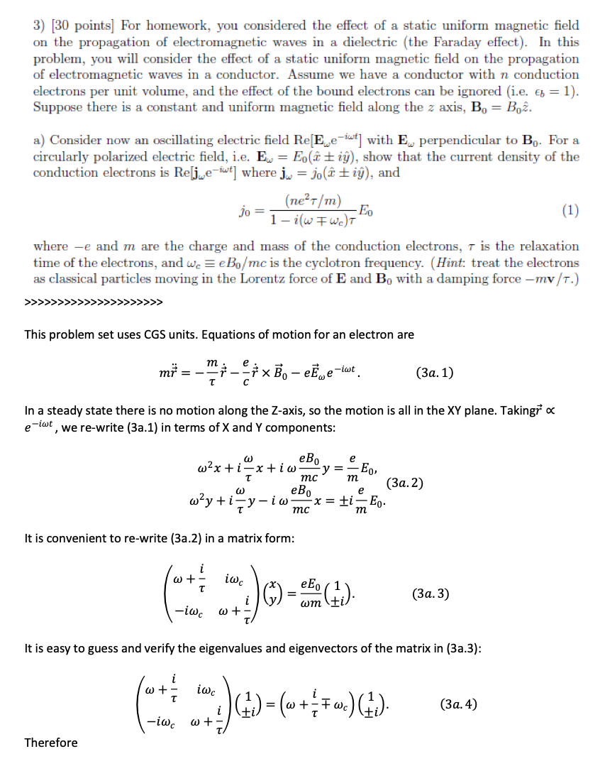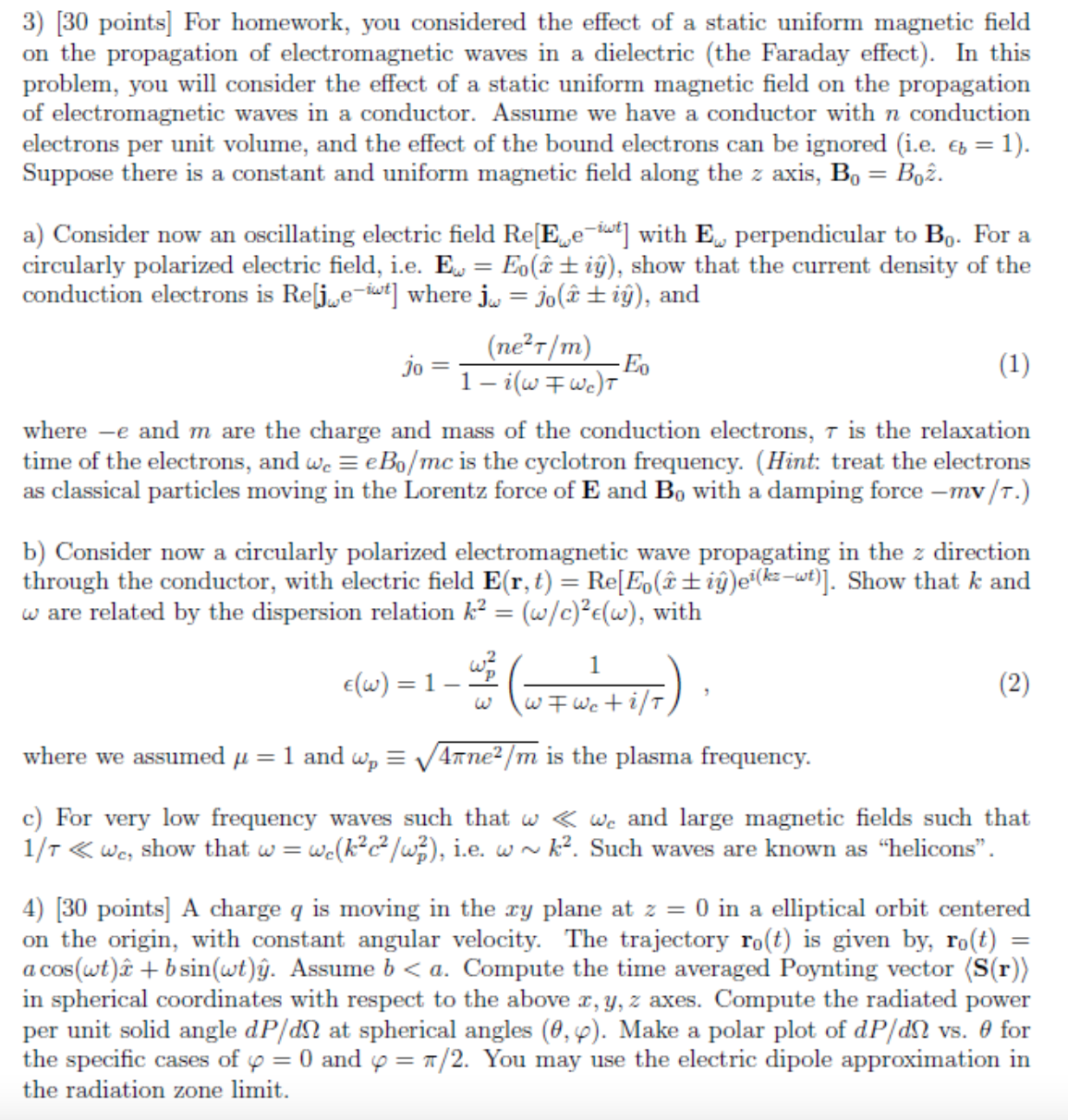 3) [30 points] For homework, you considered the effect of a static ...
