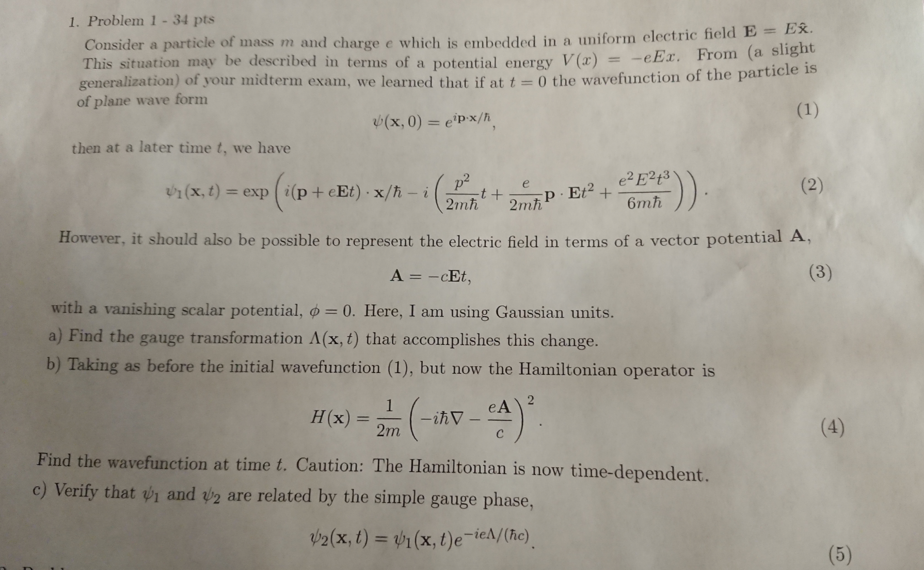 1. Problem 1 - 34 pts Consider a particle and charge e which is em...