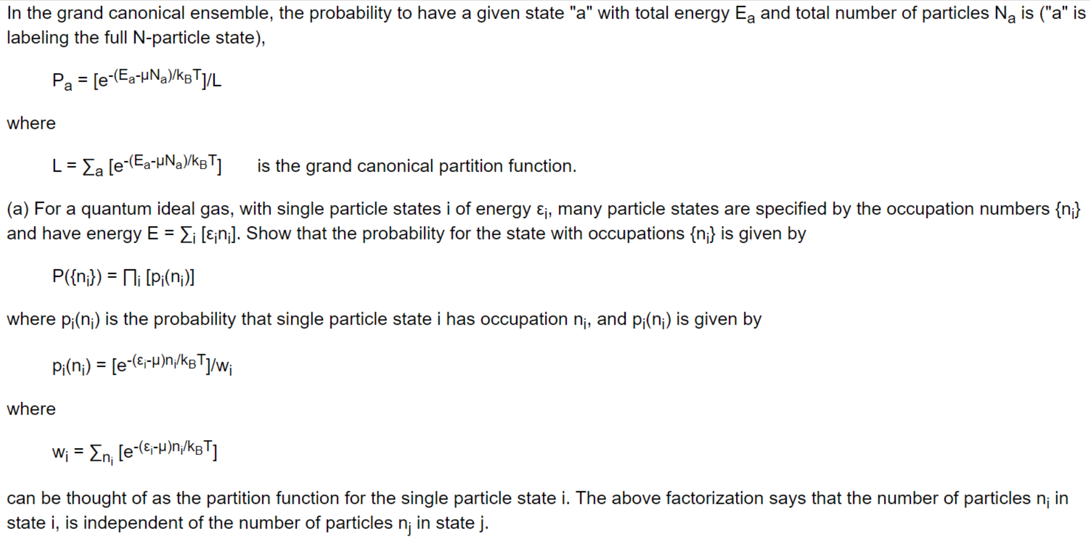 In the grand canonical ensemble, the probability to have a given st...
