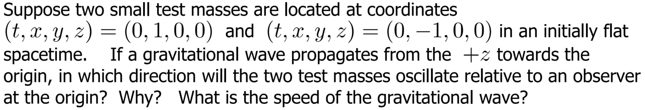 Suppose two small test masses are located at coordinates (t, x, y,...
