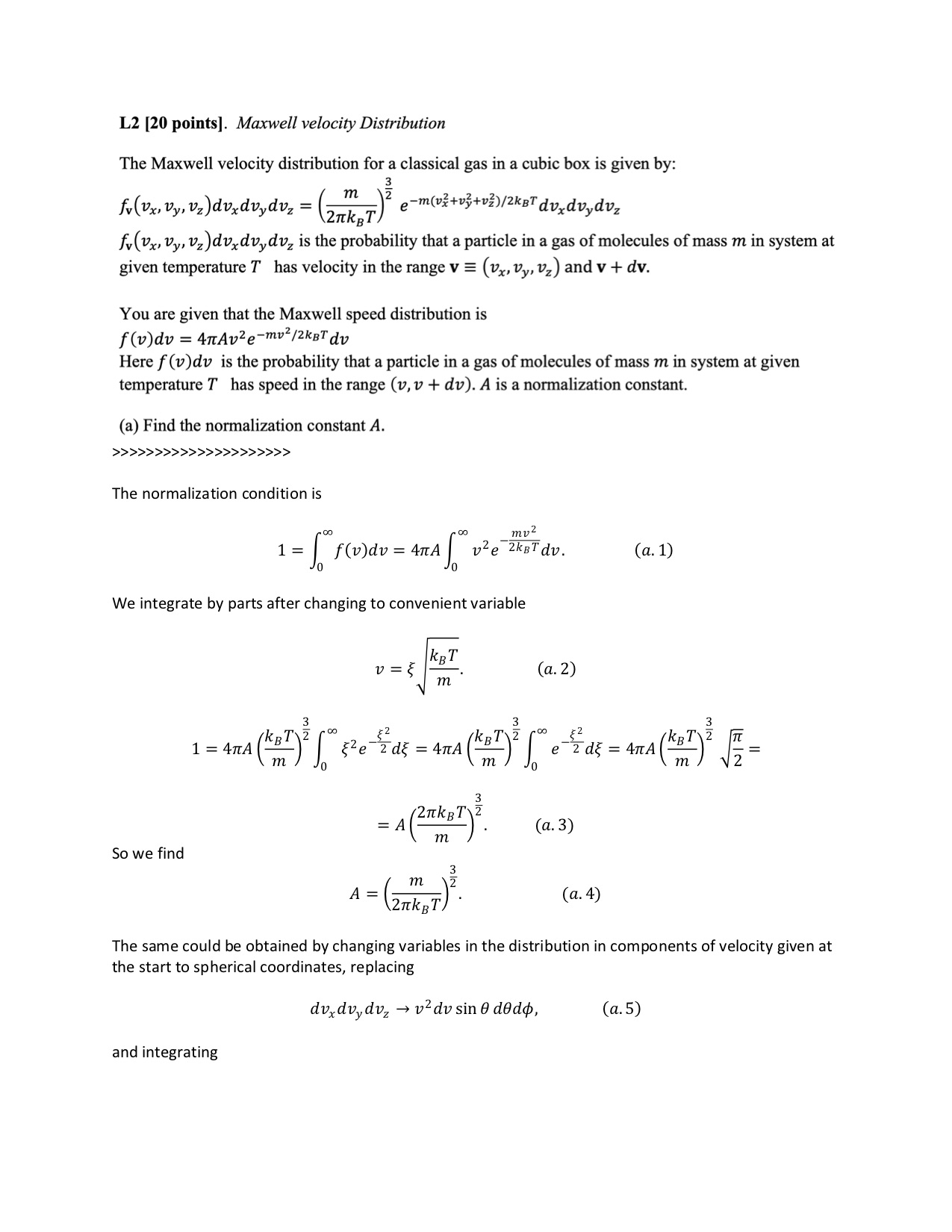 L2 [20 points]. Maxwell velocity Distribution The Maxwell velocity...