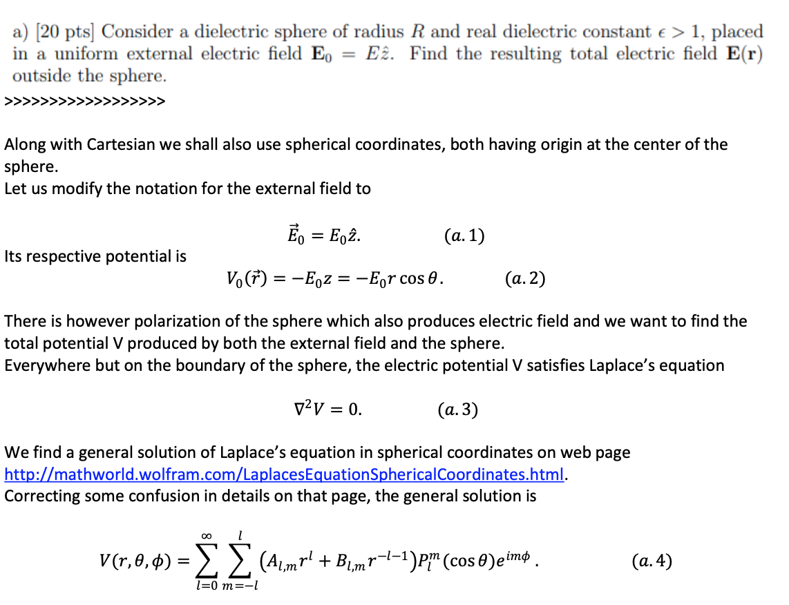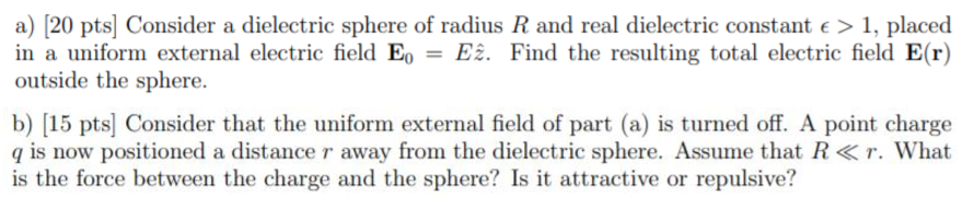 a) [20 pts] Consider a dielectric sphere of radius R and real diele...