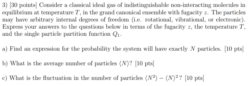 3) [30 points] Consider a classical ideal gas of indistinguishable...