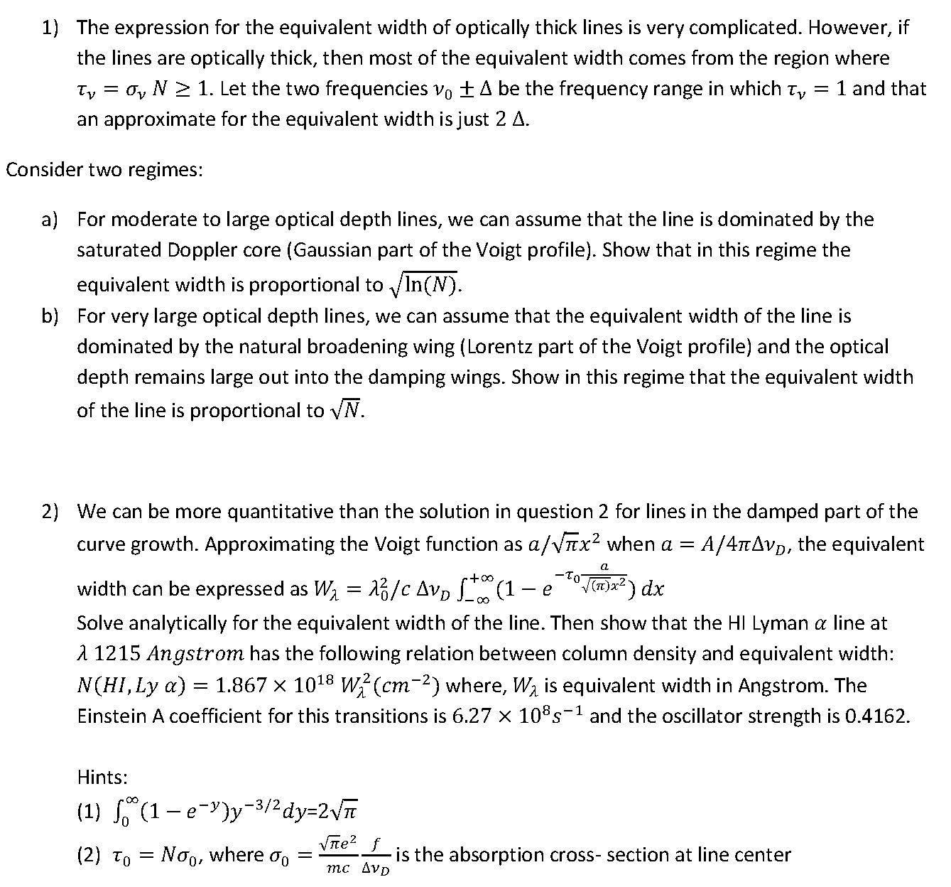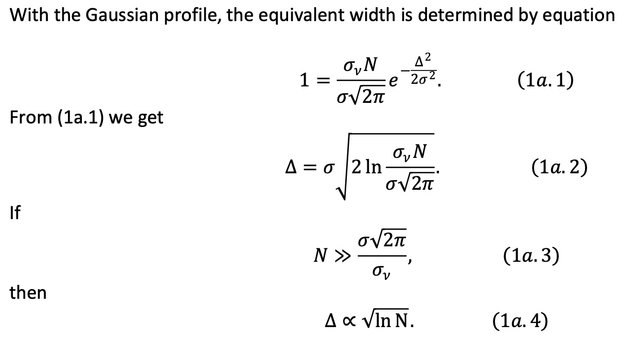 1) The expression for the equivalent width of optically thick lines...