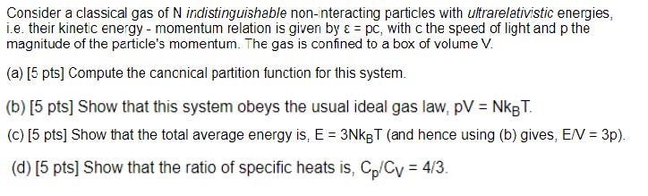 Consider a classical gas of N indistinguishable non-interacting par...
