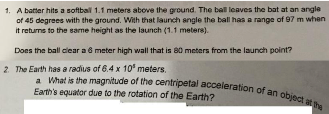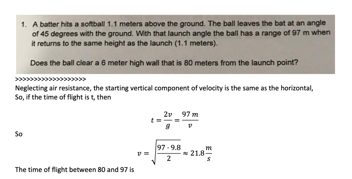 1. A batter hits a softball 1.1 meters above the ground. The ball l...