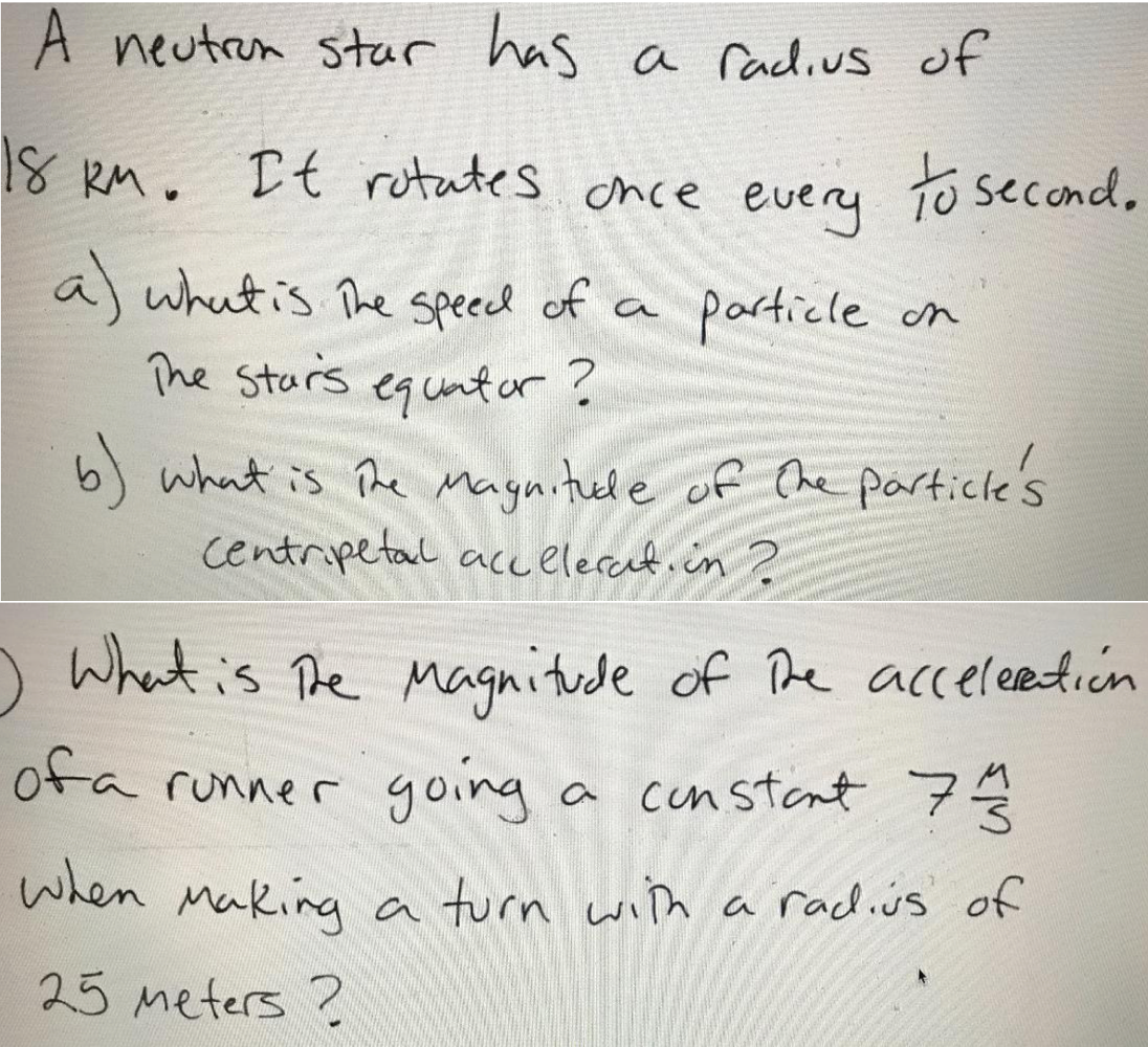 A neutron star has a radius of 8 RM. It rutates once every to seco...