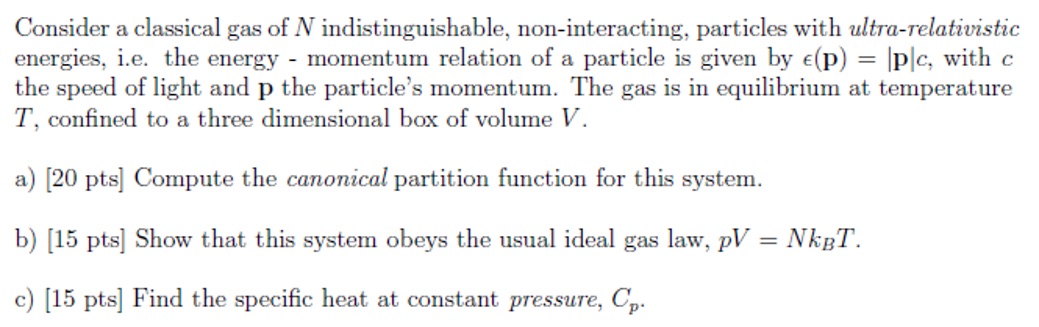 Consider a classical gas of N indistinguishable, non-interacting, p...