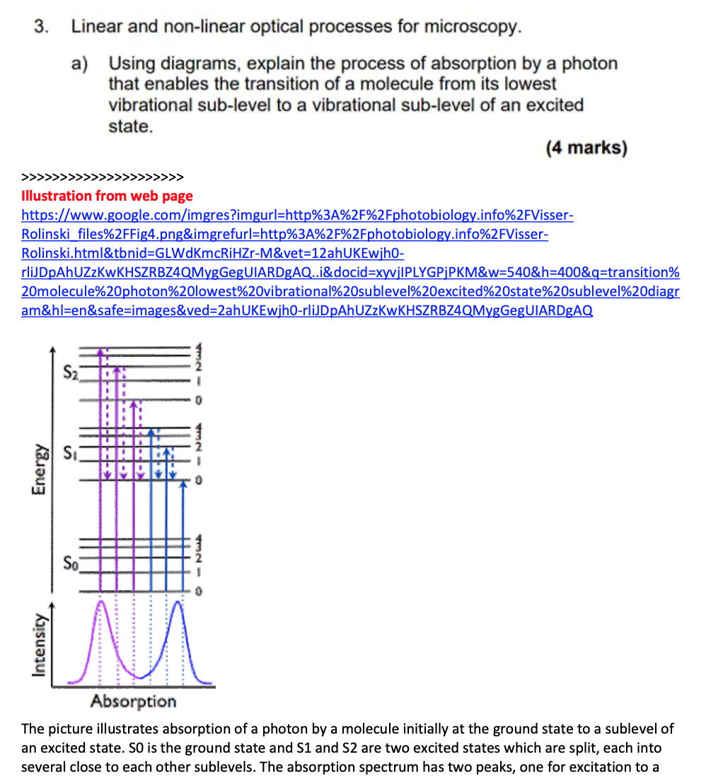 3. Linear and non-linear optical processes for microscopy. a) Us...