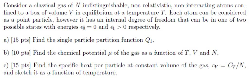 Consider a classical gas of N indistinguishable, non-relativistic, ...