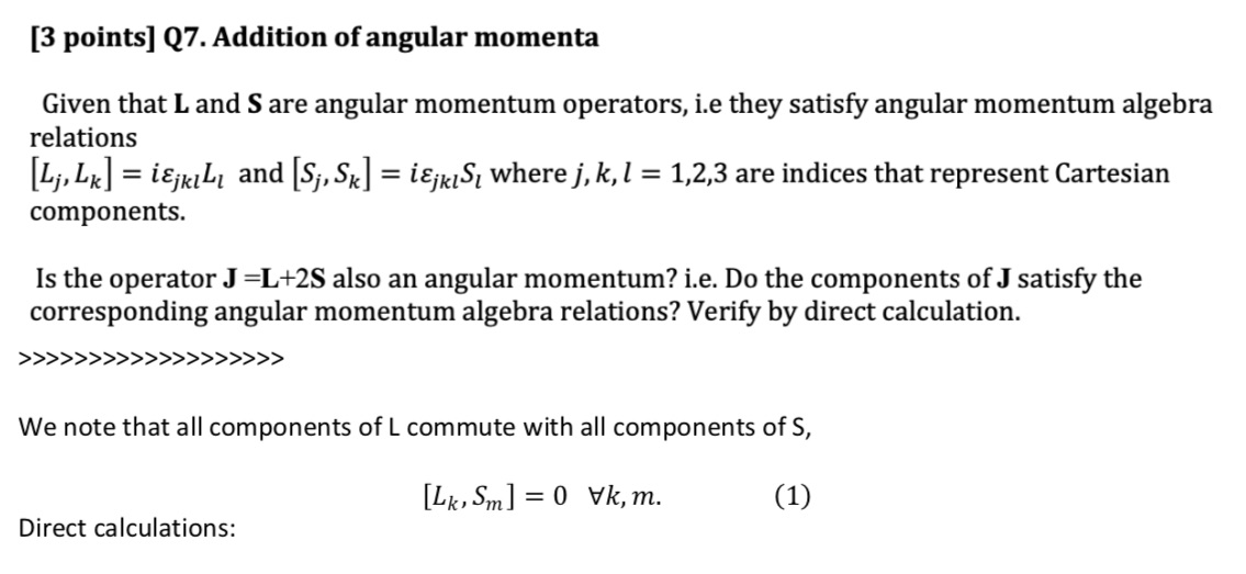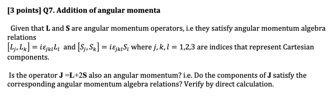 Q7. Addition of angular momenta Given that L and S are angular mom...