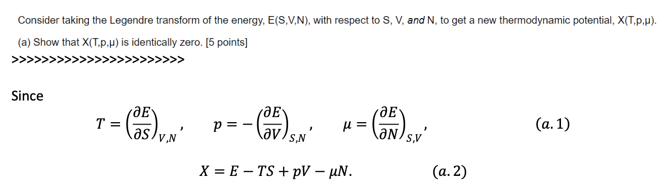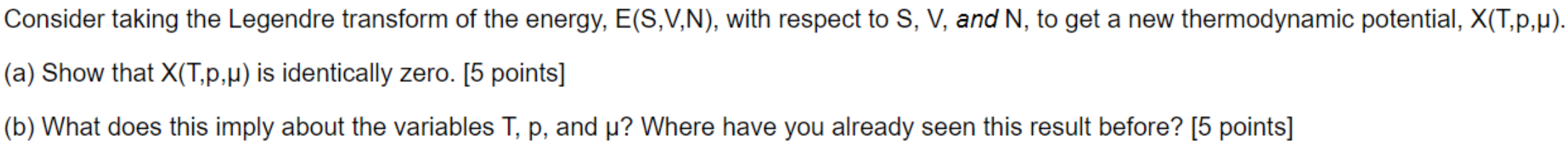 Consider taking the Legendre transform of the energy, E(S,V,N), wit...