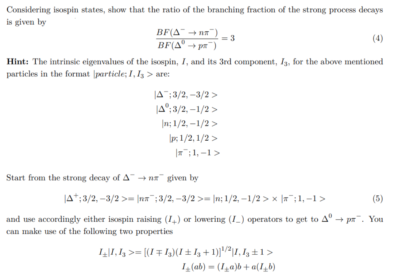 Considering isospin states, show that the ratio of the branching fr...
