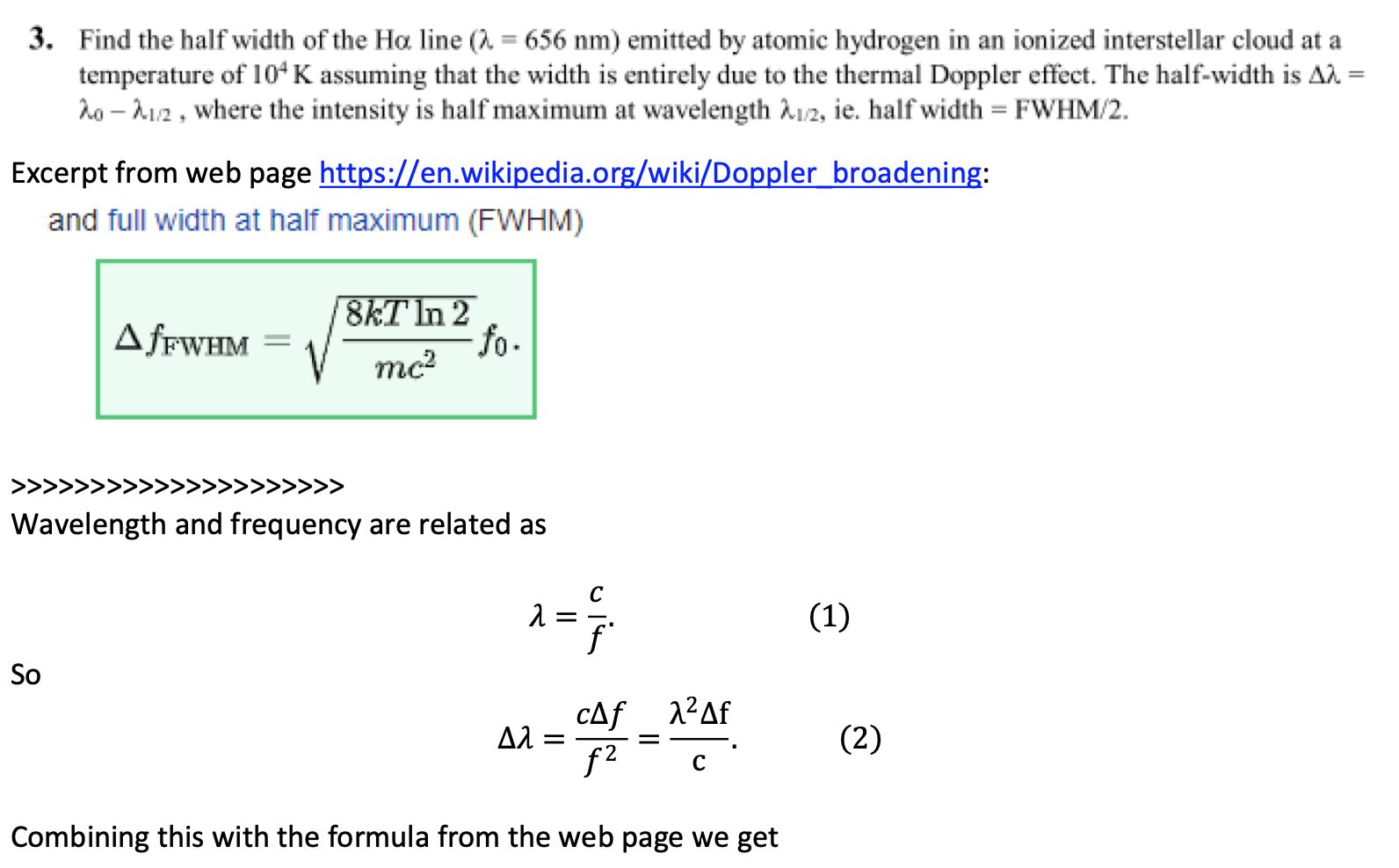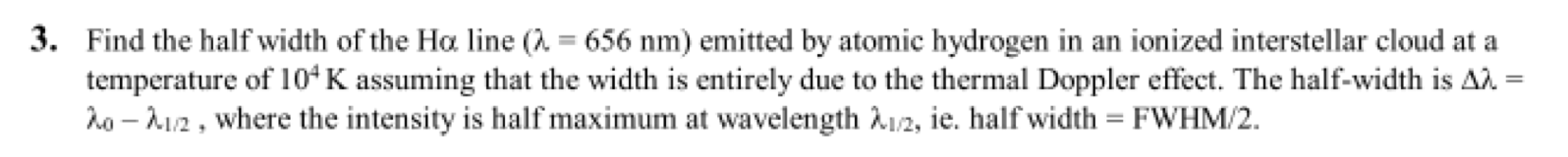 3. Find the half width of the Ha line a = 656 nm) emitted by atomic...