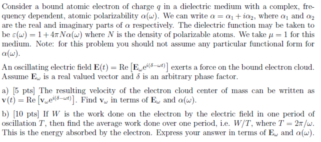 Consider a bound atomic electron of charge q in a dielectric medium...
