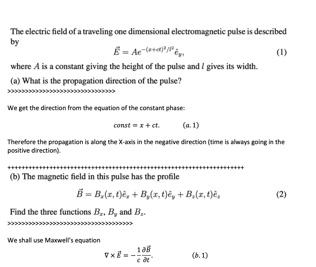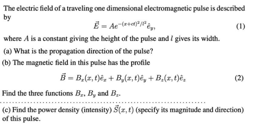 The electric field of a traveling one dimensional electromagnetic p...
