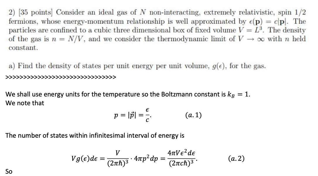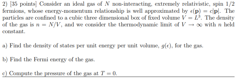 2) [35 points] Consider an ideal gas of N non-interacting, extremel...