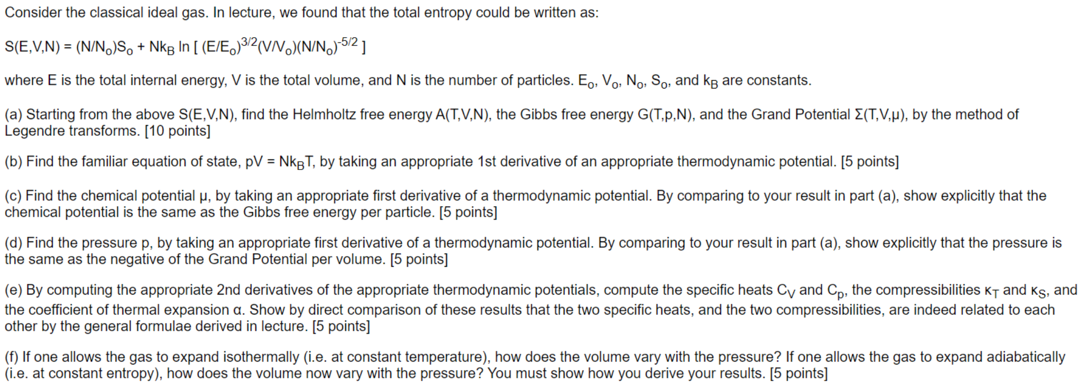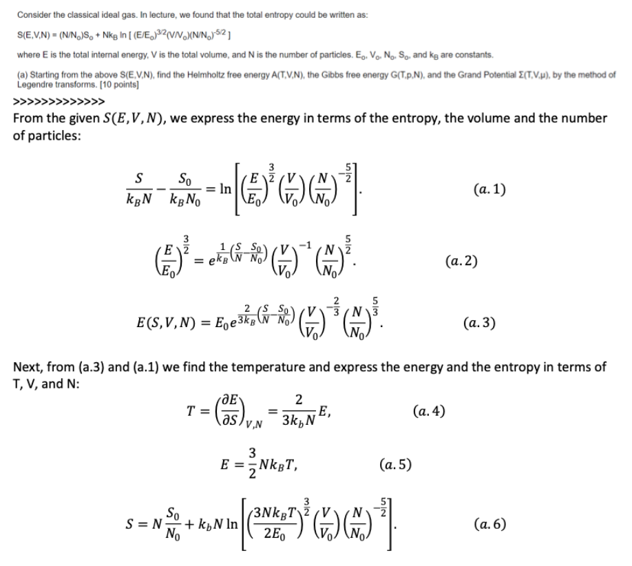 Consider the classical ideal gas. In lecture, we found that the tot...
