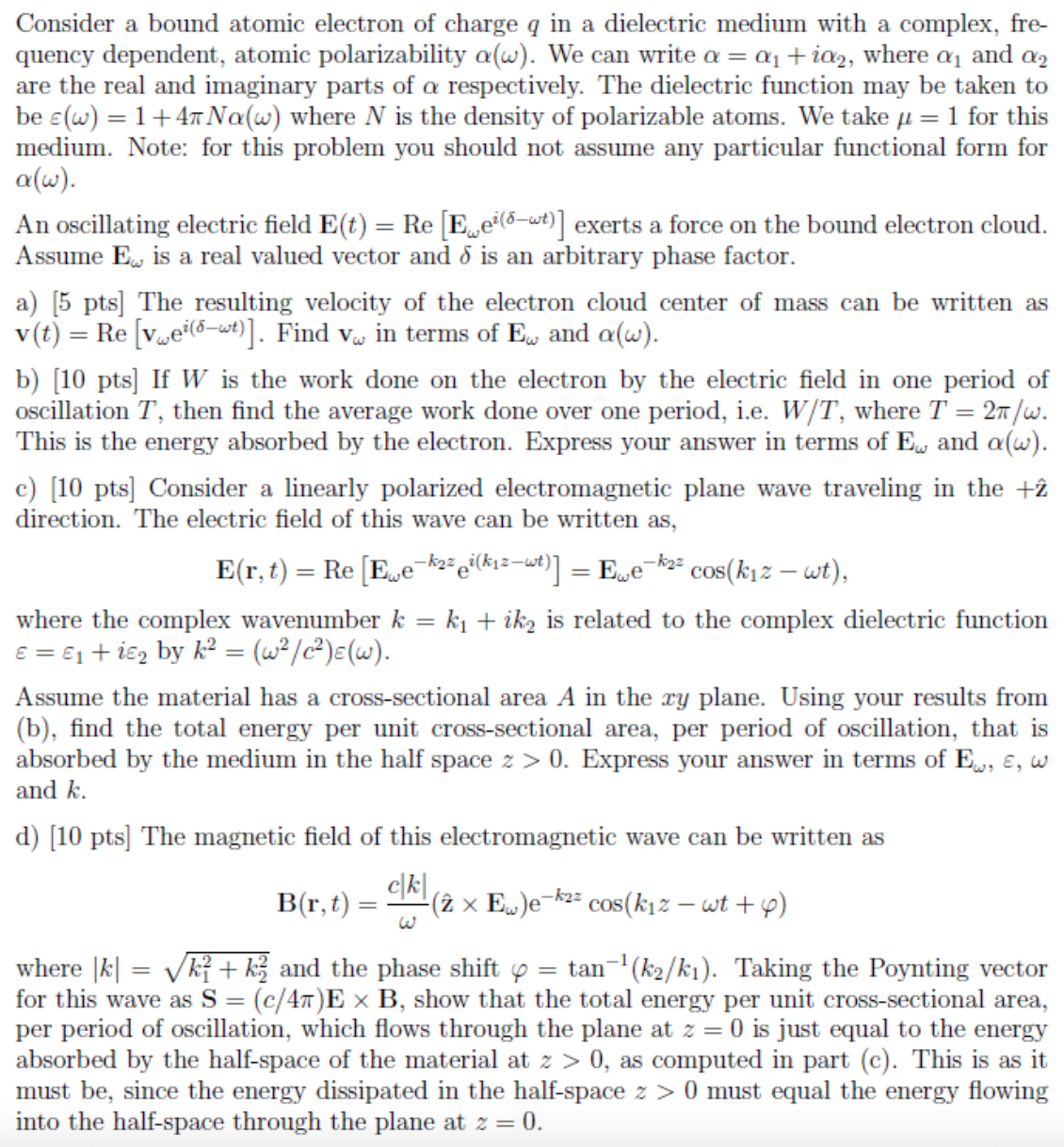 Consider a bound atomic electron of charge q in a dielectric medium...