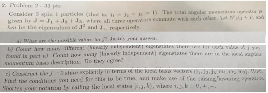 2. Problem 2 - 33 pts Consider 3 spin 1 particles (that is, j1 = j...