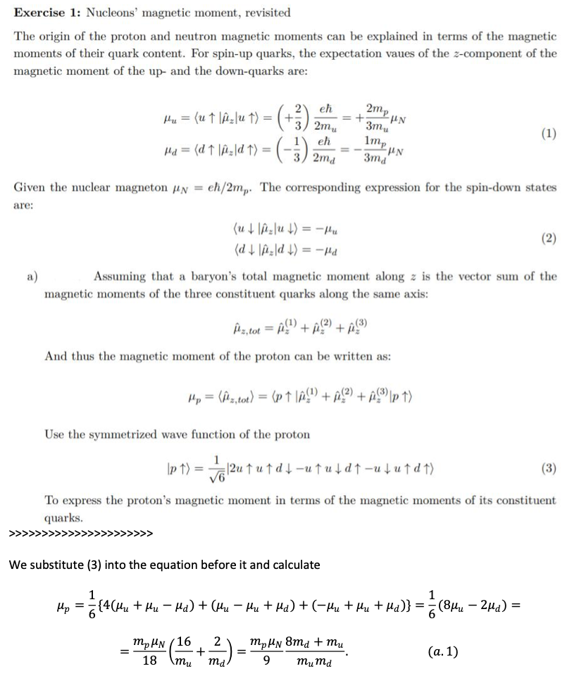 Exercise 1: Nucleons' magnetic moment, revisited The origin of the...