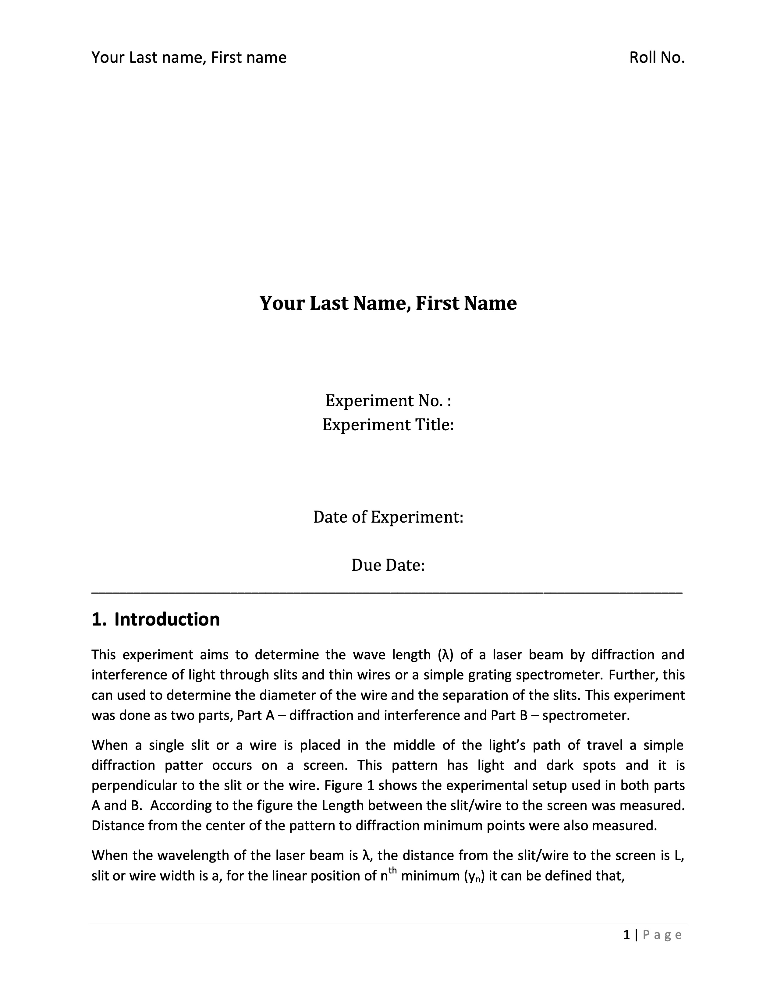 Experiment 5: Diffraction and Interference of Light Background Li...