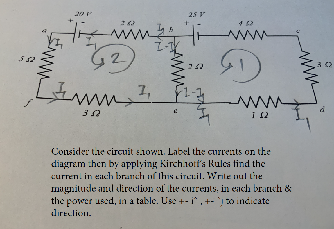 Consider the circuit shown. Label the currents on the diagram then ...