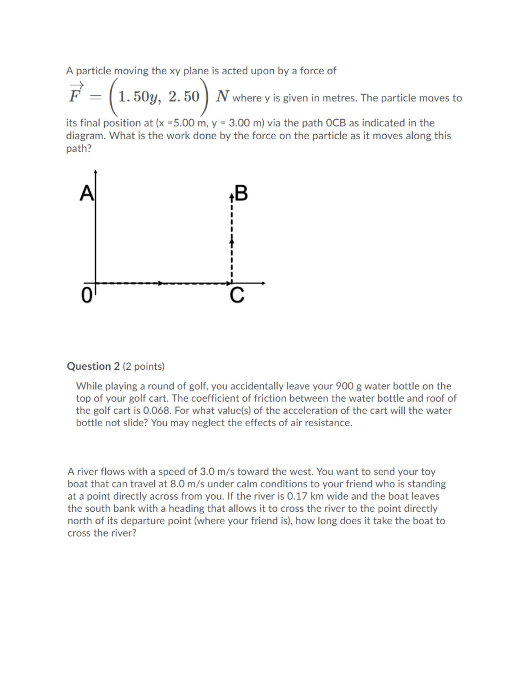 A particle moving the xy plane is acted upon by a force of F = 1....