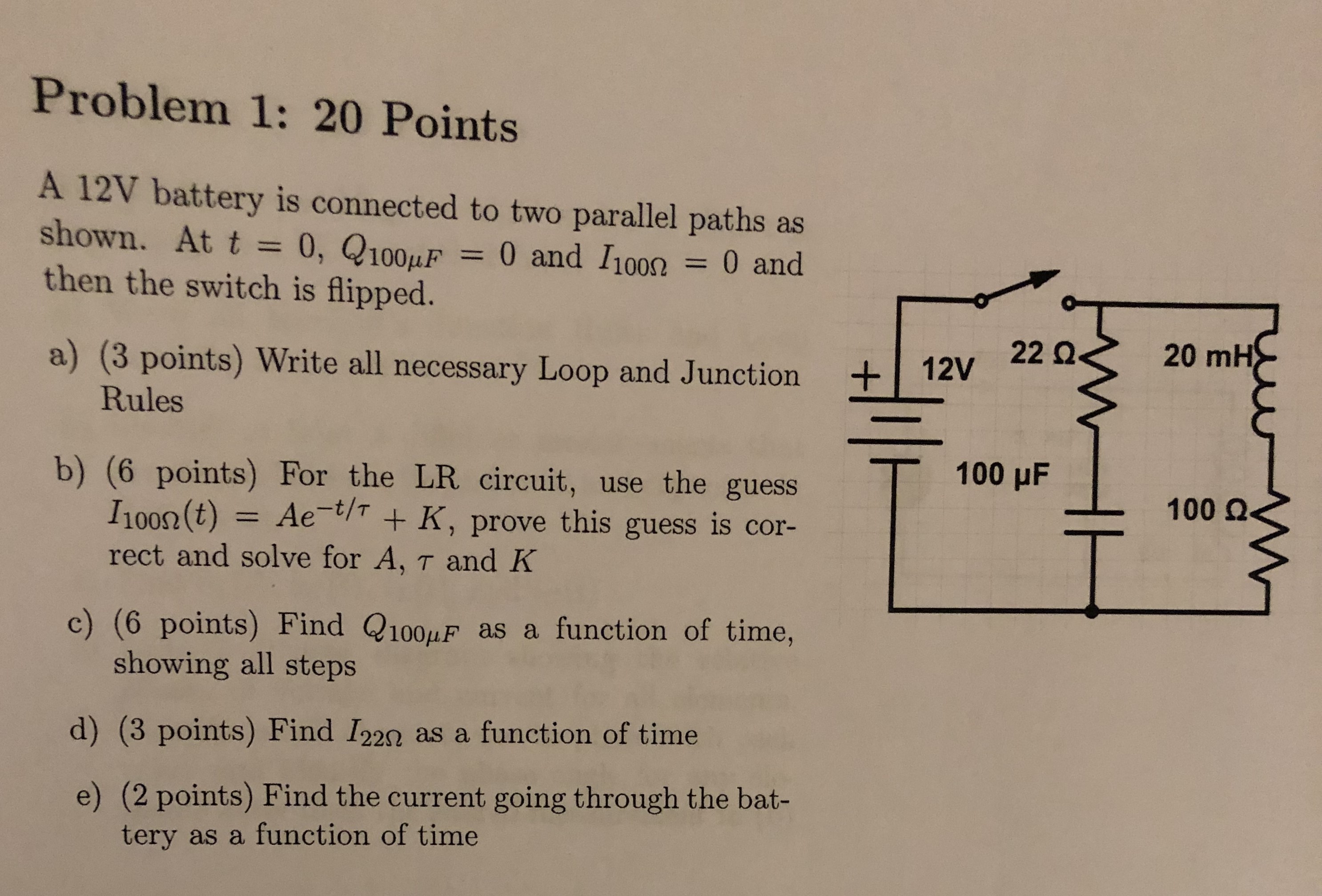 Problem 1: 20 Points A 12V battery is connected to two parallel pa...