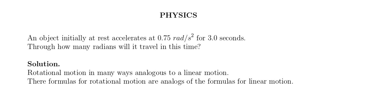 An object initially at rest accelerates at 0.75 rad/s² for 3.0 sec...