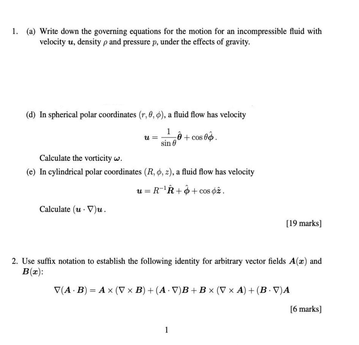 1. (a) Write down the governing equations for the motion for an in...