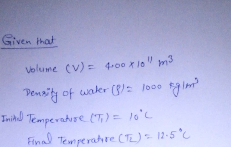 1. A lake contains 4.00 x 10^11 m3 of water. How much energy would ...