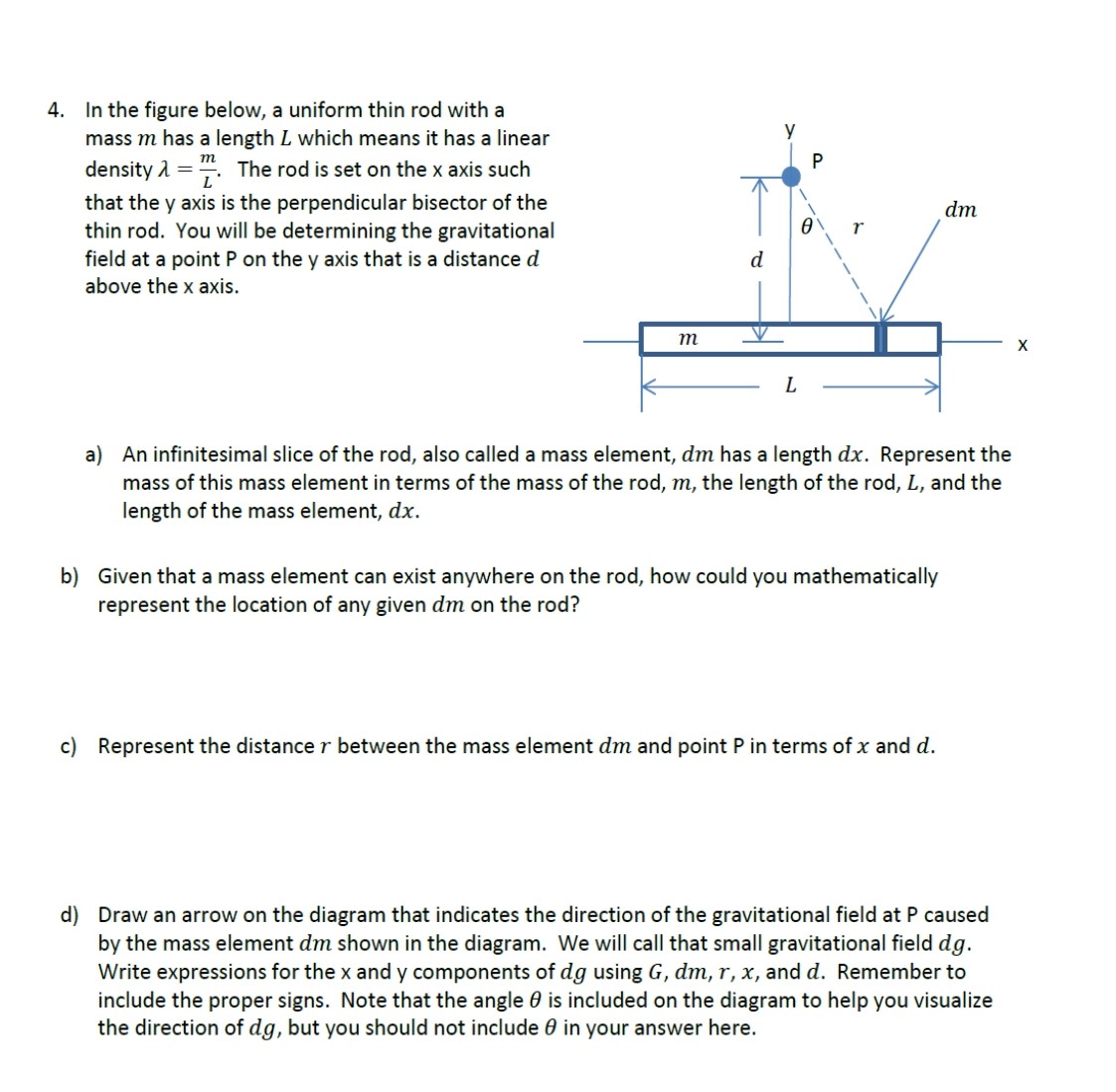 4. In the figure below, a uniform thin rod with a mass m has a len...