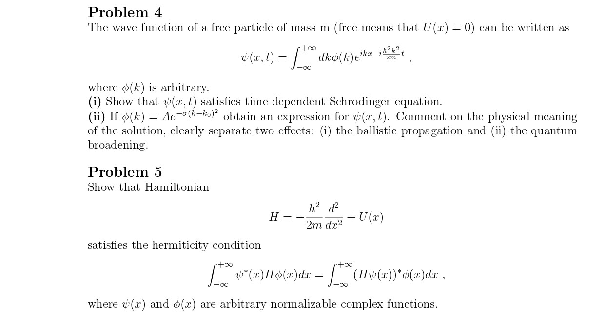 Problem 4 The wave function of a free particle of mass m (free mea...