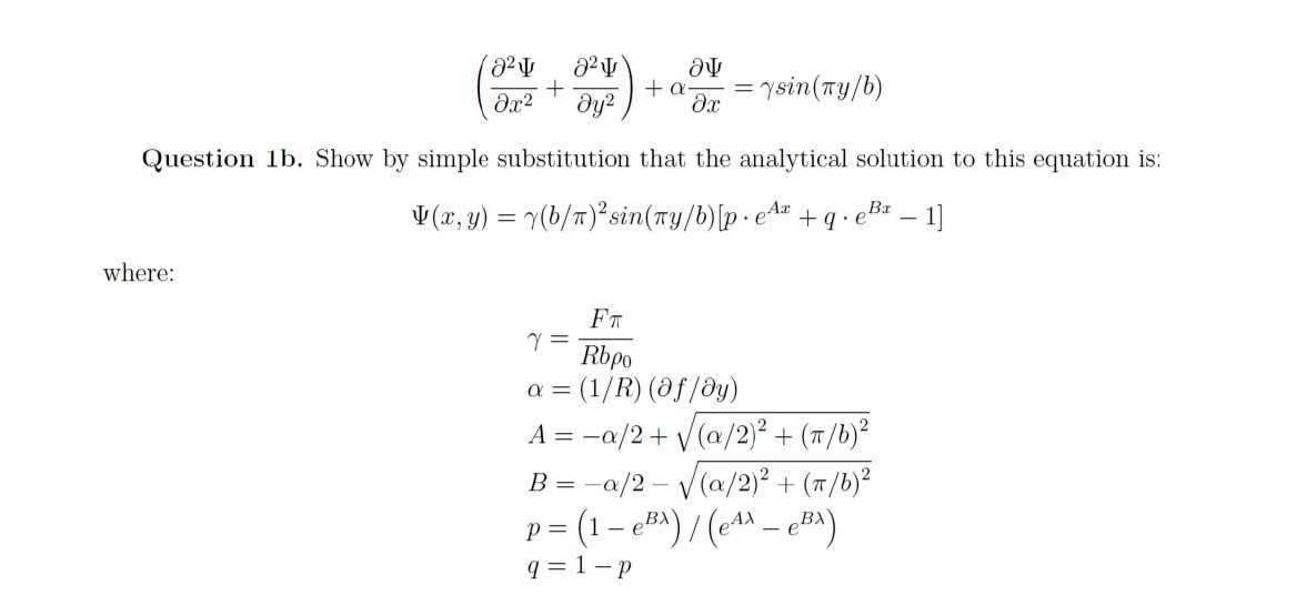 Question 1b. Show by simple substitution that the analytical soluti...