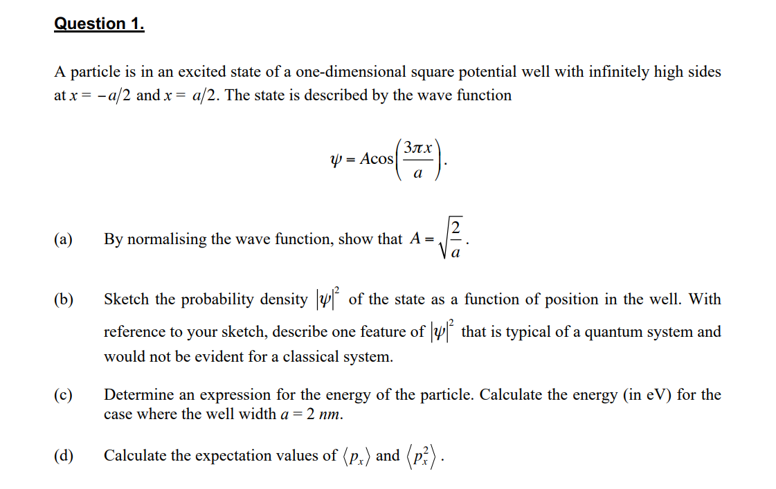 Question 1. A particle is in an excited state of a one-dimensional...
