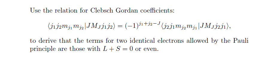 Use the relation for Clebsch Gordan coefficients: = to derive tha...